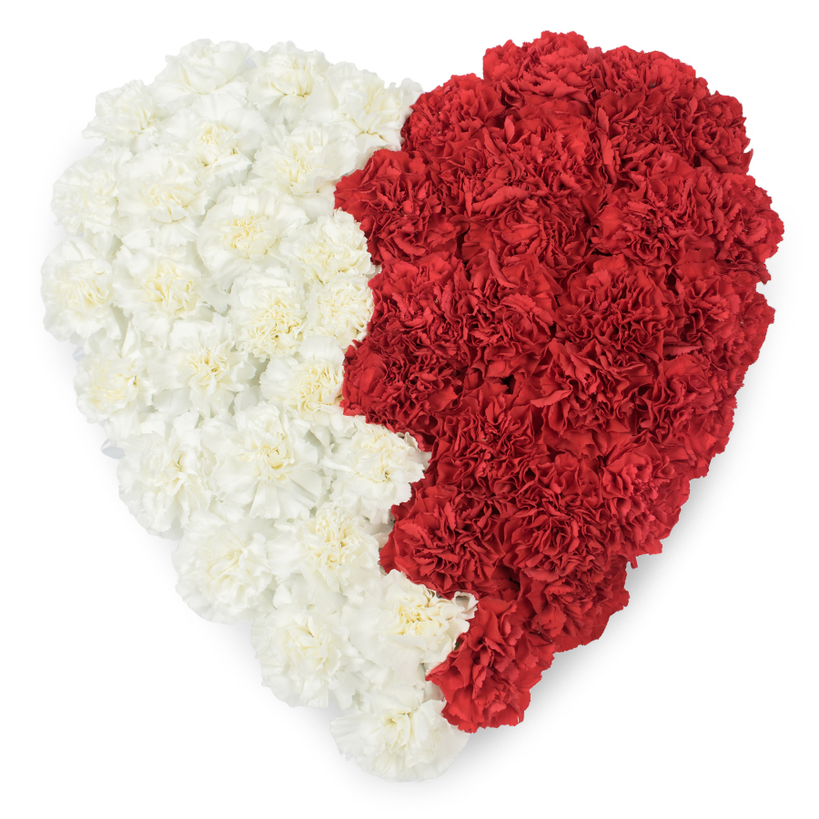 Express your deepest sympathies with our elegant red and white carnation arrangement. Each carnation is hand-picked to ensure unparalleled freshness and vibrant color, creating a beautifully unique bouquet.